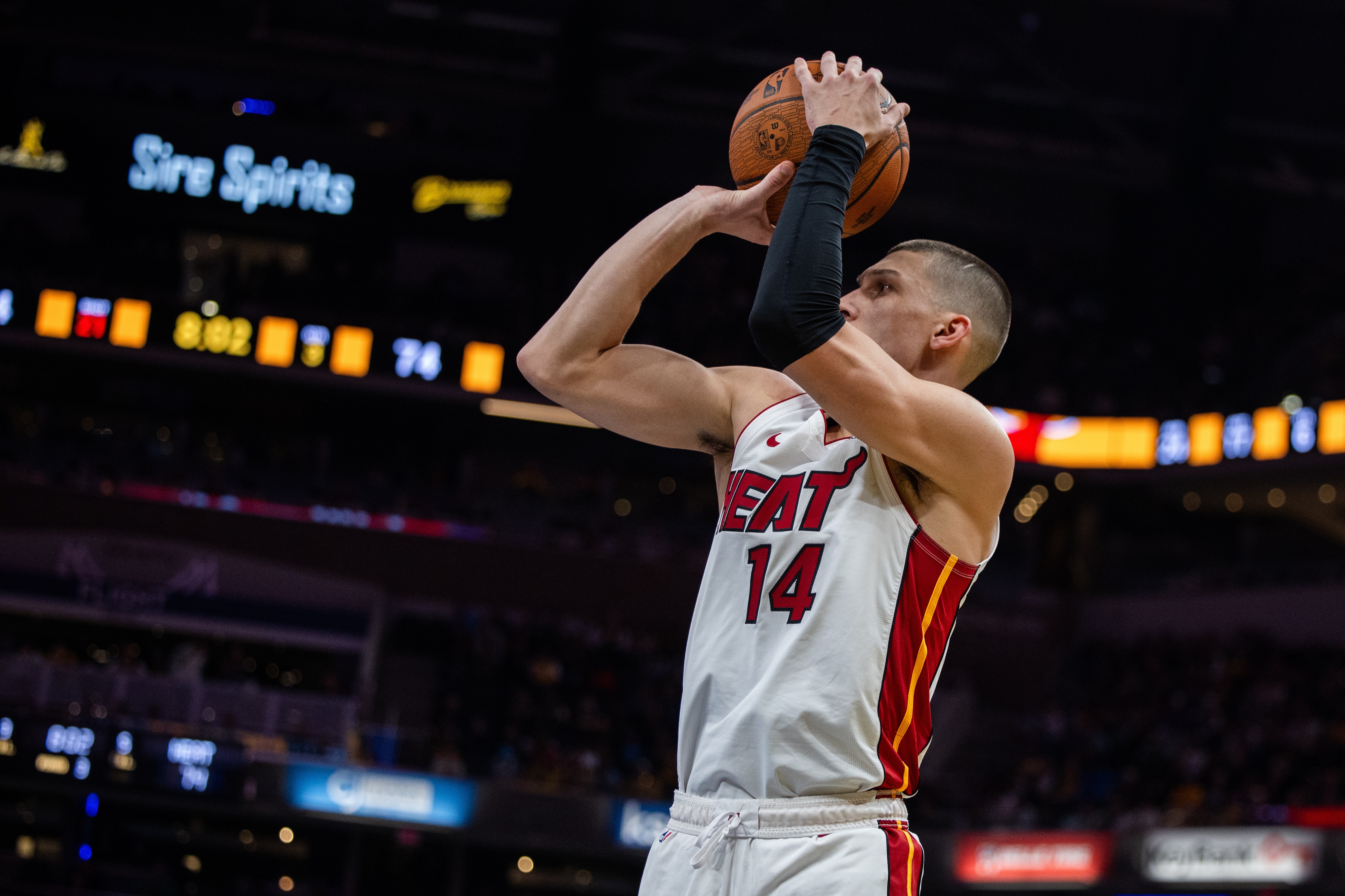 本场比赛,热火球员希罗在40分钟的时间里,投篮27中12,三分球12中3,罚球14中13,空砍40分7篮板11助攻的数据,正负值+7。