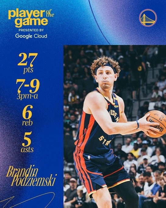 2025-03-31 13:19:09三分9中7轰27+6+5!勇士官方发布波杰姆数据海报:本场最佳球员