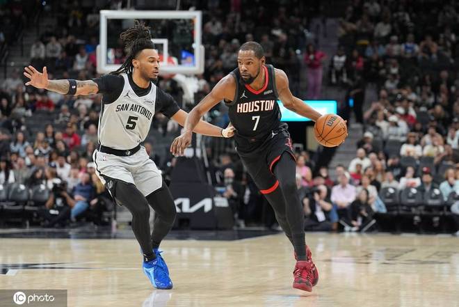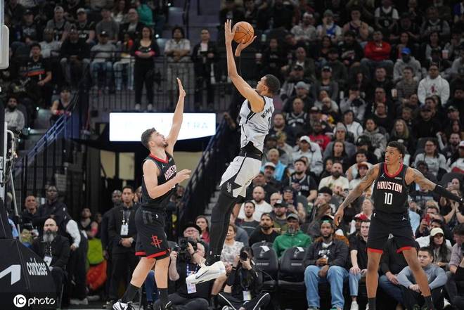 上半场最后45秒,马刺队其实就已开始起势了,哈珀和福克斯两次强突如手术刀一般划开火箭的防线,逼着后者不得不仓促将防守阵地回缩,但下一个回合,文班的一记压哨三分,又给了火箭队当头一闷棍。