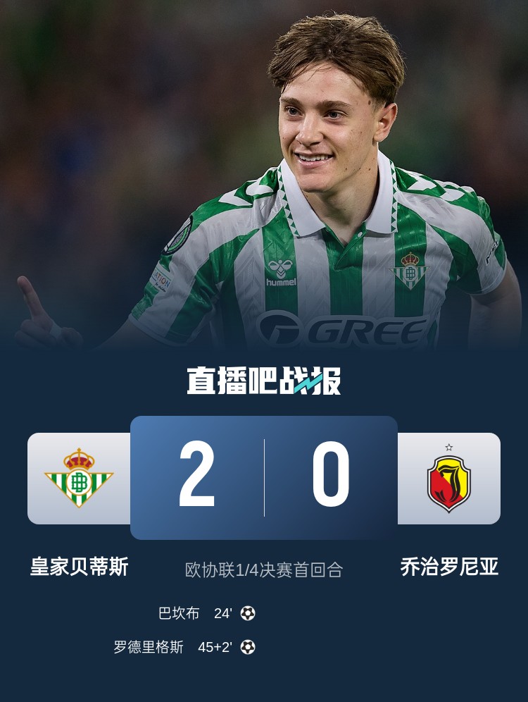 巴坎布破门,贝蒂斯2-0击败乔治罗尼亚。