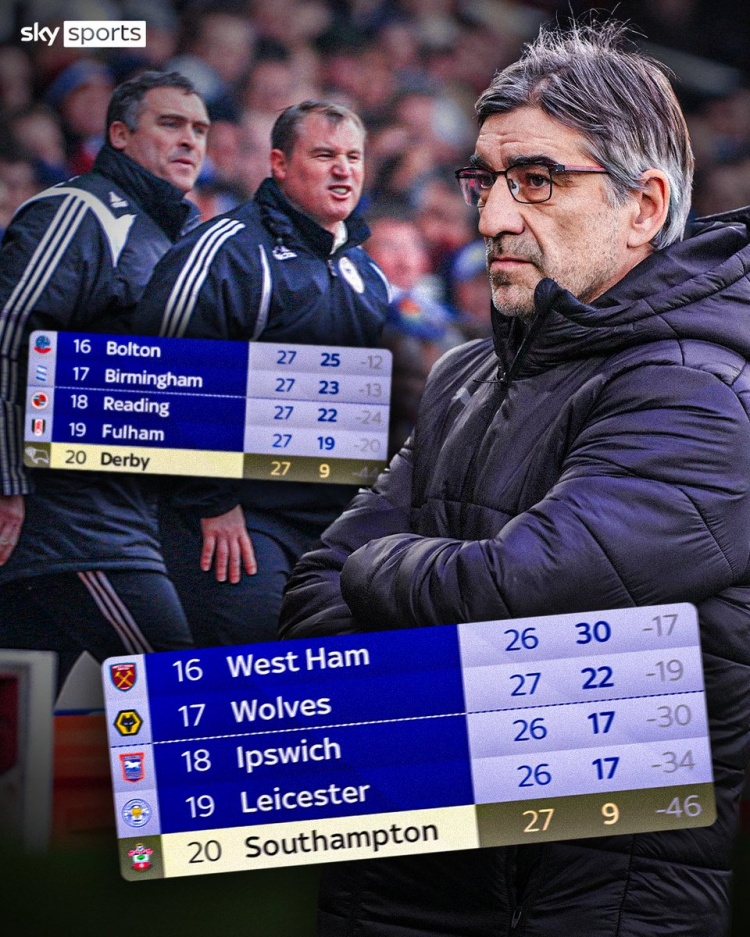 2025-02-27 00:00:15圣徒27轮后积分与07-08赛季德比郡相同 后者11分创英超最低积分