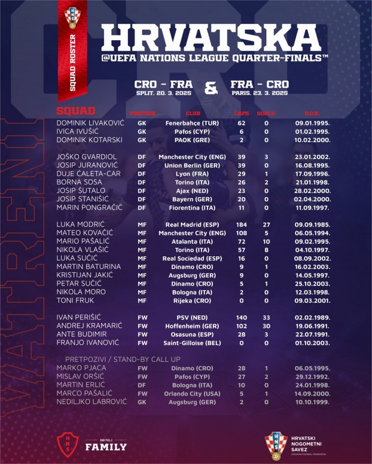 2025-03-03 21:06:10克罗地亚名单:莫德里奇领衔,科瓦西奇、佩里西奇、格瓦在列