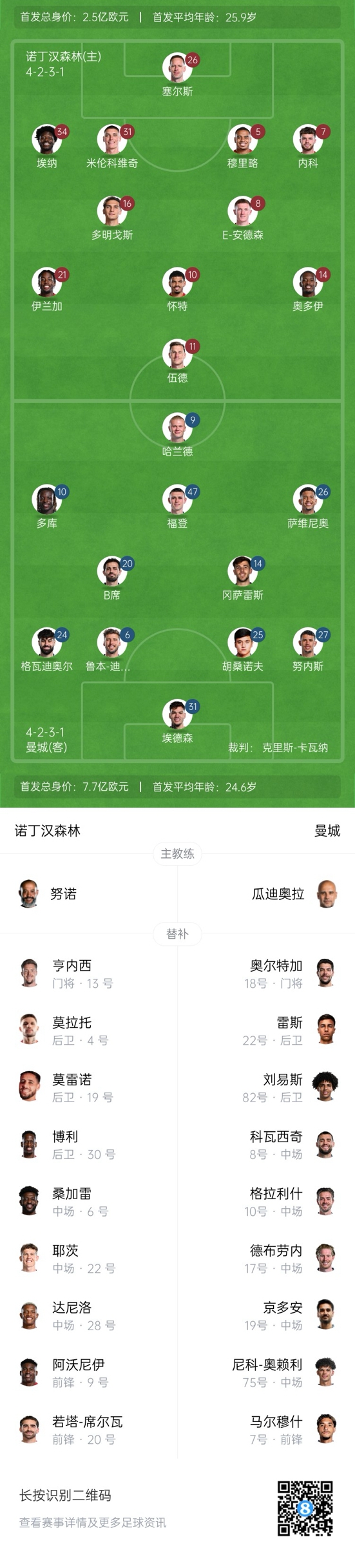 2025-03-08 21:23:27曼城客战森林首发:哈兰德PK伍德!胡桑诺夫先发,马尔穆什替补